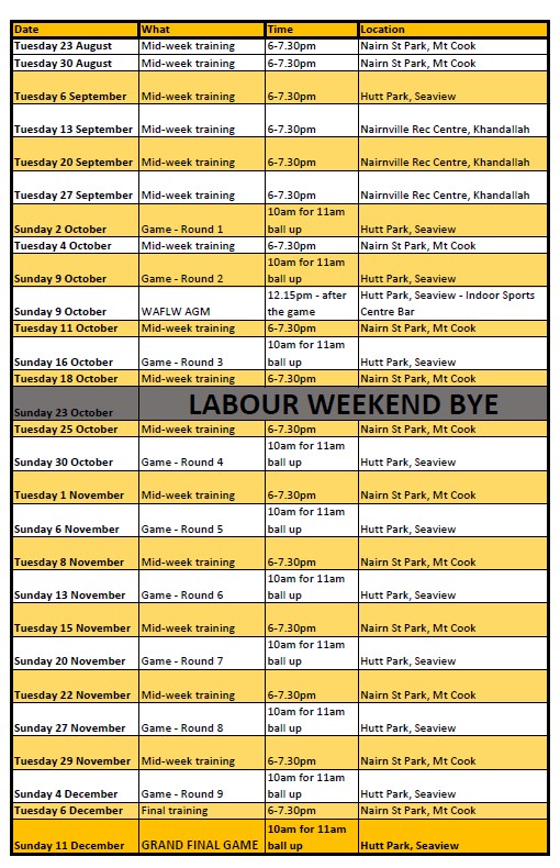 To stay up to date, join the Wellington Women’s AFL Player group on Facebook to find out when the next training session or game is!